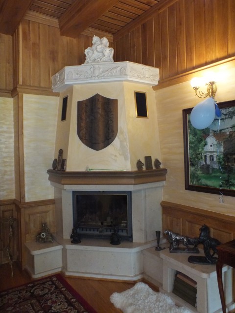 Powstał wówczas budynek drewniany, modrzewiowy, o konstrukcji zrębowej, parterowy, dziewięcioosiowy, z piętrową częścią środkową od frontu, przyjmującą kształt ryzalitu zakończonego wystawką zwieńczoną dekoracyjnym, falistym szczytem. Pokryto go wysokim dachem czterospadowym, wykonanym z gontu.