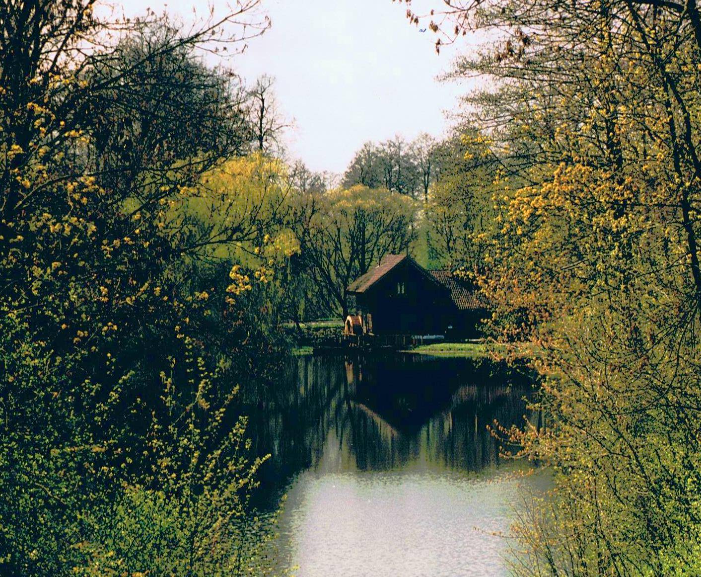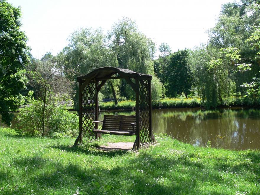 Z dala od pałacu, na południowym brzegu stawu stał drewniany młyn wodny, zbudowany w 1850 r. jeszcze przez poprzednich właścicieli. Nie pełnił on funkcji gospodarczych, lecz dekoracyjnie, świetnie komponując się z otaczającym go fragmentem parku.