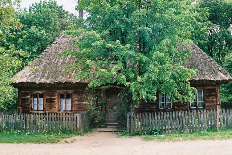Chata dworkowa z 1840 roku przeniesiona do skansenu |
