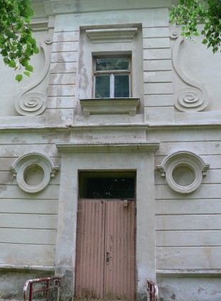 Stanął przed nim dwukolumnowy portyk zwieńczony półkolistym frontonem, obwiedzionym kostkowym gzymsem. Taki sam gzyms wieńczył elewacje korpusu głównego, a gzyms kroksztynowy - elewacje skrzydła bocznego i łącznika. Wszystkie te elewacje zostały skromnie ozdobione za pomocą lizen i poziomych nadokienników. Natomiast dekorację elewacji bocznej korpusu głównego stanowiło boniowanie, zaślepione okulusy z półkolistymi naczółkami oraz spływy wolutowe. W elewacji ogrodowej szczególną uwagę zwracał półkolisty, trójosiowy ryzalit łącznika, nakryty namiotowym dachem.