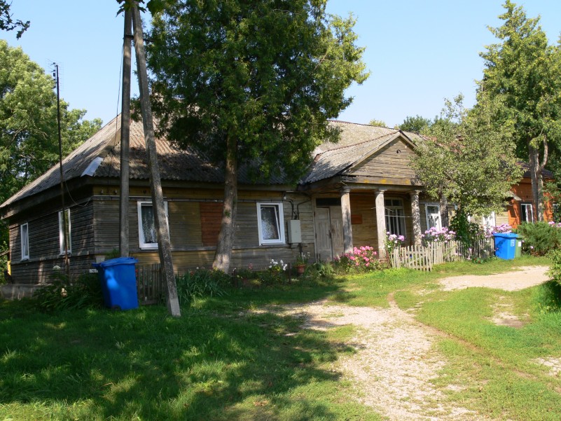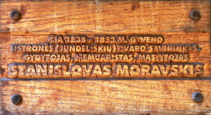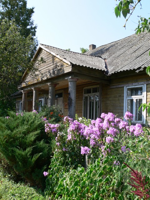 Wyglądał niepozornie - parterowy, drewniany, pokryty dachem z eternitu, ze zmurszałymi deskami frontonu, z niedomykającymi się drzwiami wejściowymi. Okna raziły swoją różnorodnością, połowa była plastikowa, a jedno nawet zabite deskami. Do prawej elewacji bocznej dostawiono dobudówkę, zupełnie niepasującą do reszty budynku. Gdyby nie czterokolumnowy portyk, charakterystyczny dla staropolskich dworków, powiedzielibyśmy, że mamy przed sobą starą, zaniedbaną, wiejską chałupę. Kiedy zbliżyliśmy się do drzwi wejściowych, zobaczyliśmy przybitą do ściany drewnianą tablicę z napisem informującym w języku litewskim, iż w latach 1838-1853 mieszkał w tym dworze lekarz, pamiętnikarz, myśliciel, Stanisław Morawski.