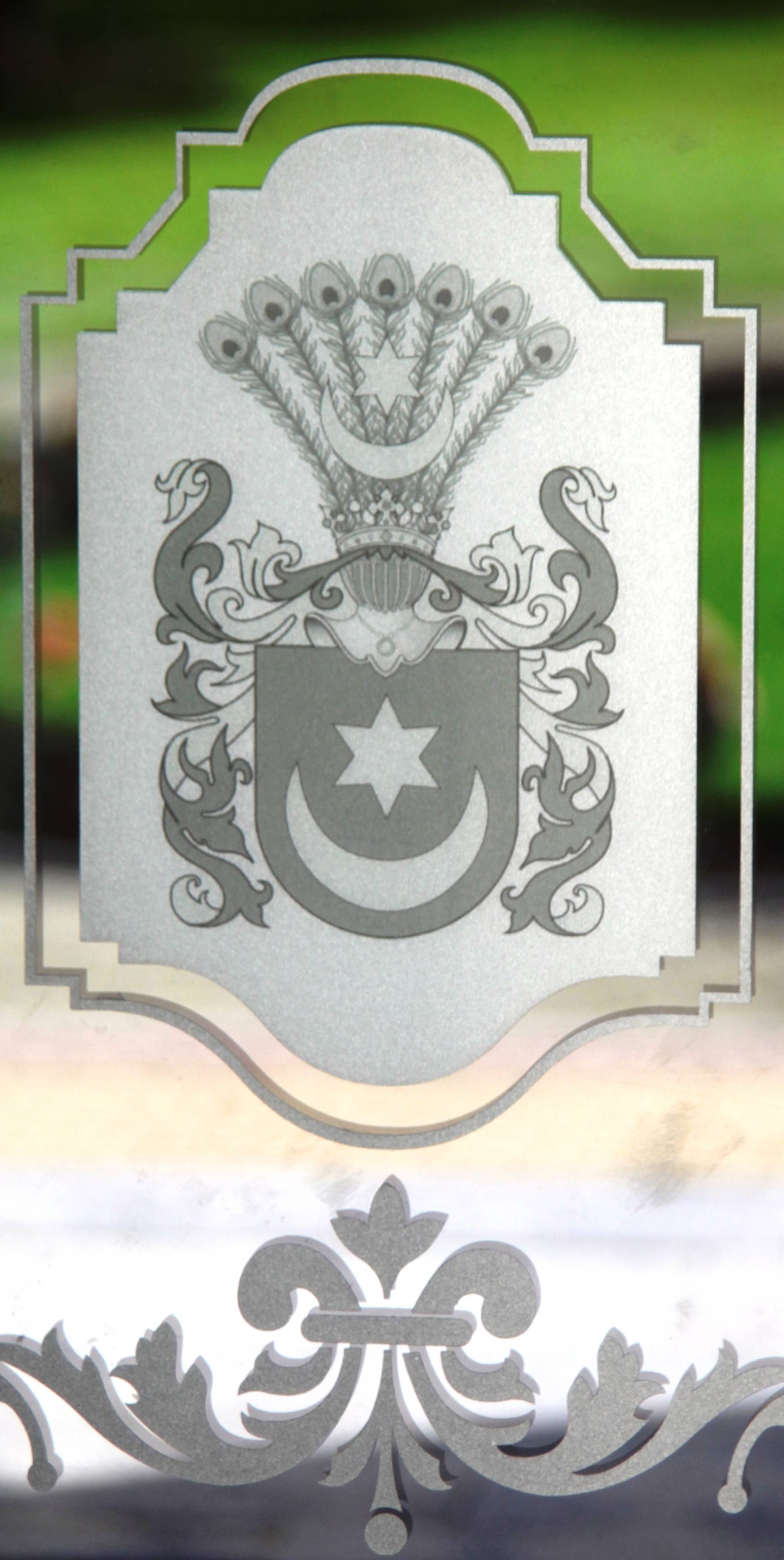 Leliwa - herb rodowy Tyszkiewiczów na drzwiach wejściowych do pałacu |