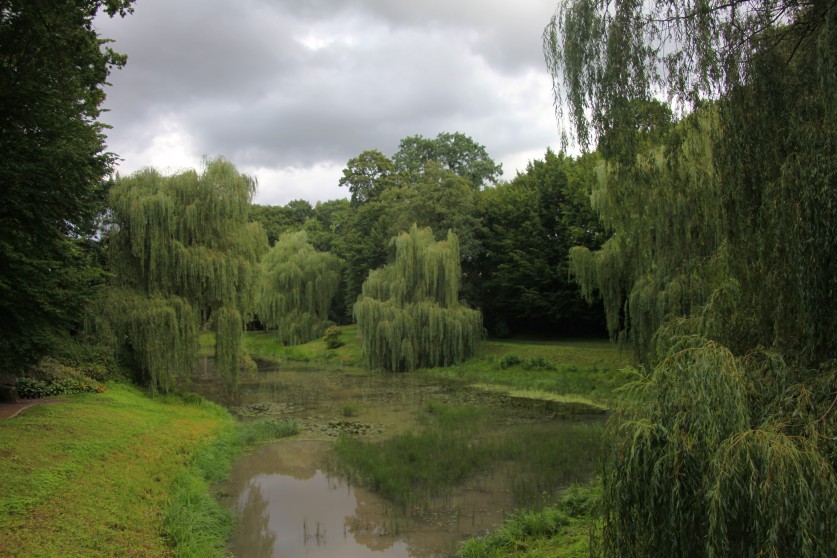 O ile pałac w Kretyndze nie był zbyt imponujący, to otaczający go park budził niemały podziw. Zasługa to niewątpliwie ogrodnika Tyszkiewiczów, Węgra o nazwisku Hajduk, sprowadzonego z austriackiego Schönbrunn oraz terenu, niezwykle urozmaiconego, falistego, z płynącą przezeń rzeką Okmianą i wpadającym do niej strumieniem. Przegrodzenie tego strumienia w trzech miejscach spowodowało powstanie trzech dużych stawów, na których w krótkim czasie zaroiło się od wodnego ptactwa.