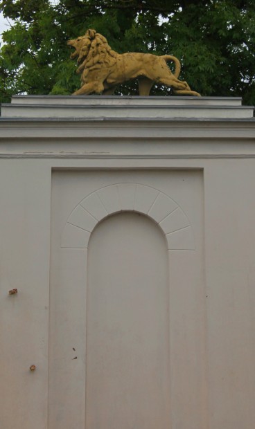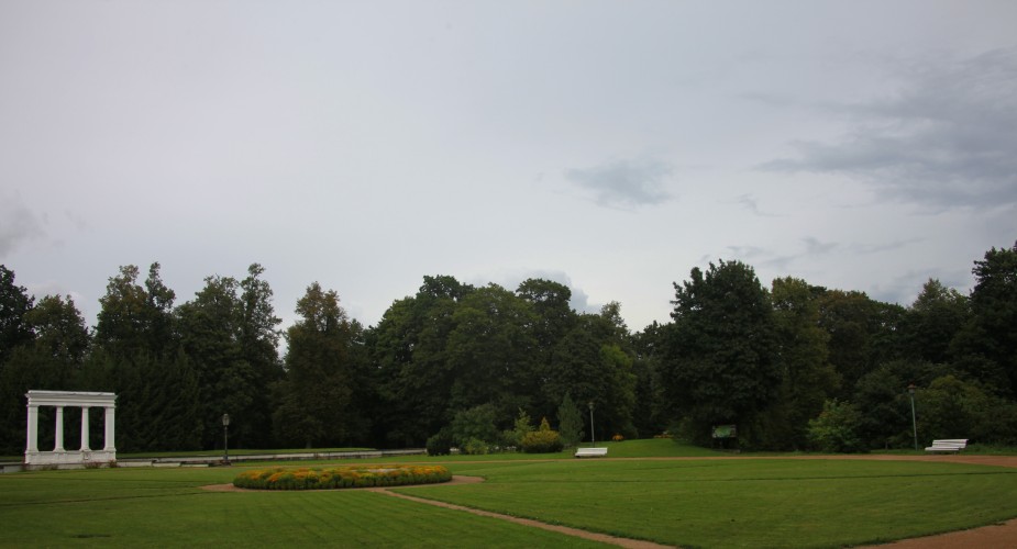 Wokół pałacu założony został park o powierzchni około 60 hektarów. Przepływał przezeń strumień Jura zasilający kilka sadzawek i kanałów oraz duży staw utworzony przed pałacem, od którego oddzielał go rząd ozdobnych krzewów i szereg klombów kwiatowych. Wśród tych klombów stanęło dwanaście kamiennych posągów przedstawiających mitologiczne postaci.