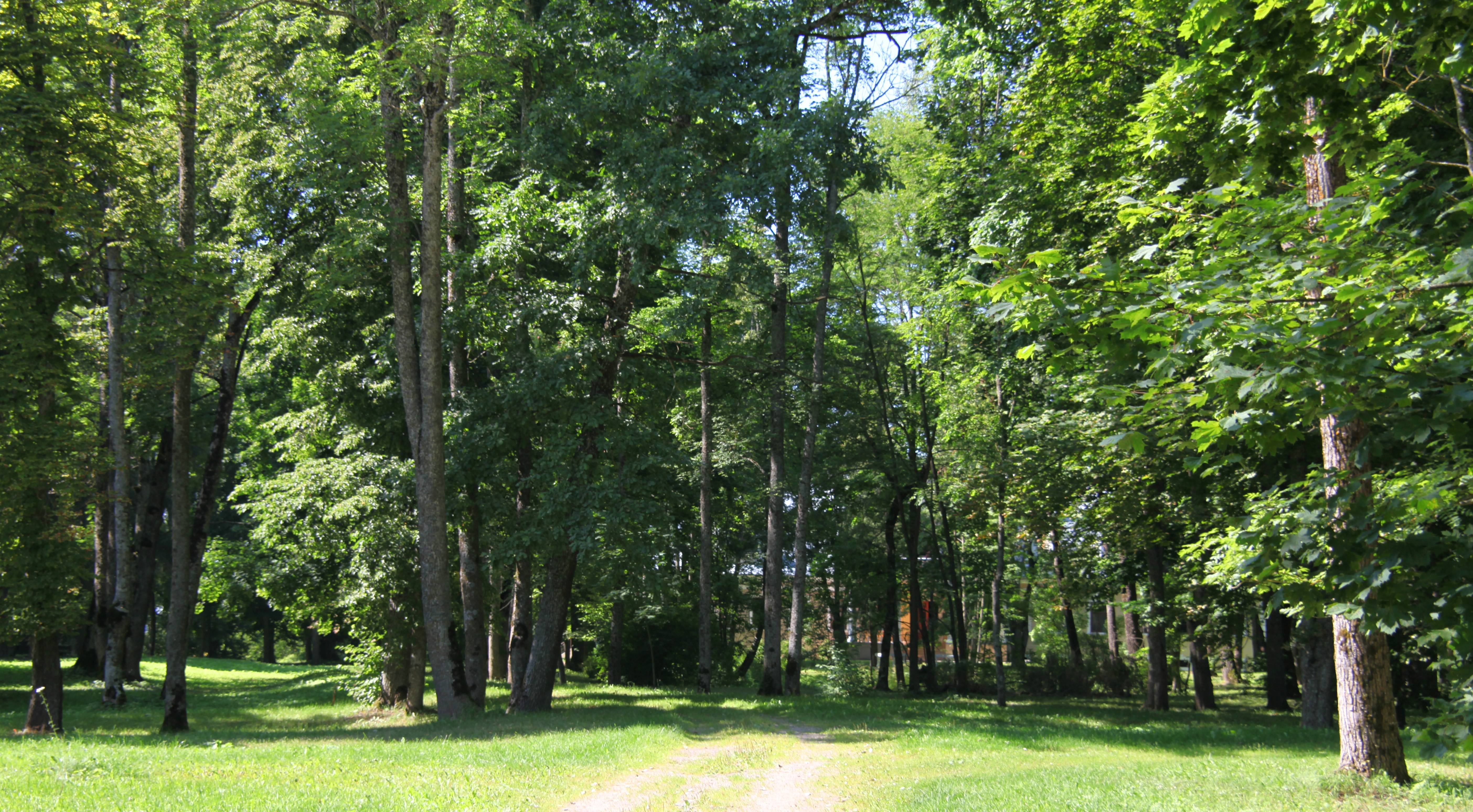 Ze względu na to, że dwór zbudowany został na zboczu wzgórza schodzącego ku rzece Szałtonie (lit. Šaltuona), elewacja ogrodowa wygląda na dwukondygnacyjną, gdyż sutereny stały się niejako parterem. Ryzality są identyczne, jak w elewacji frontowej, przed środkowym znajduje się również portyk, tylko znacznie mniejszy, z czterema filarami podtrzymującymi mały balkon, otoczony tralkową balustradą.