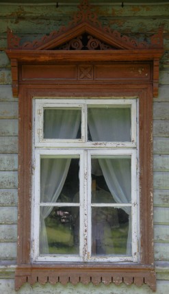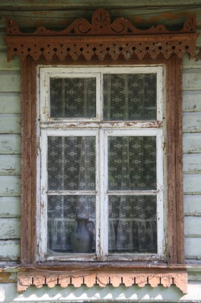 Prostokątne okna otrzymały wydatne obramienia z dekoracyjnymi nad- i podokiennikami.