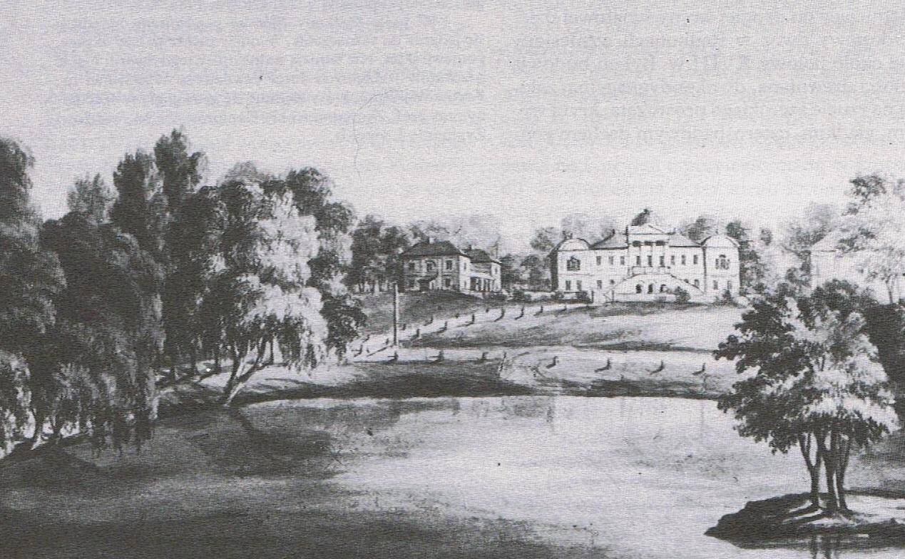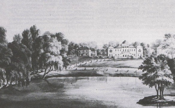 Pałac w Rakiszkach przed przebudową dokonaną w 1905 roku na rysunku Napoleona Ordy |