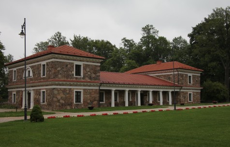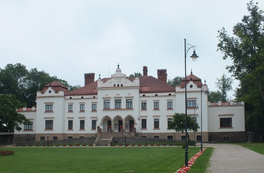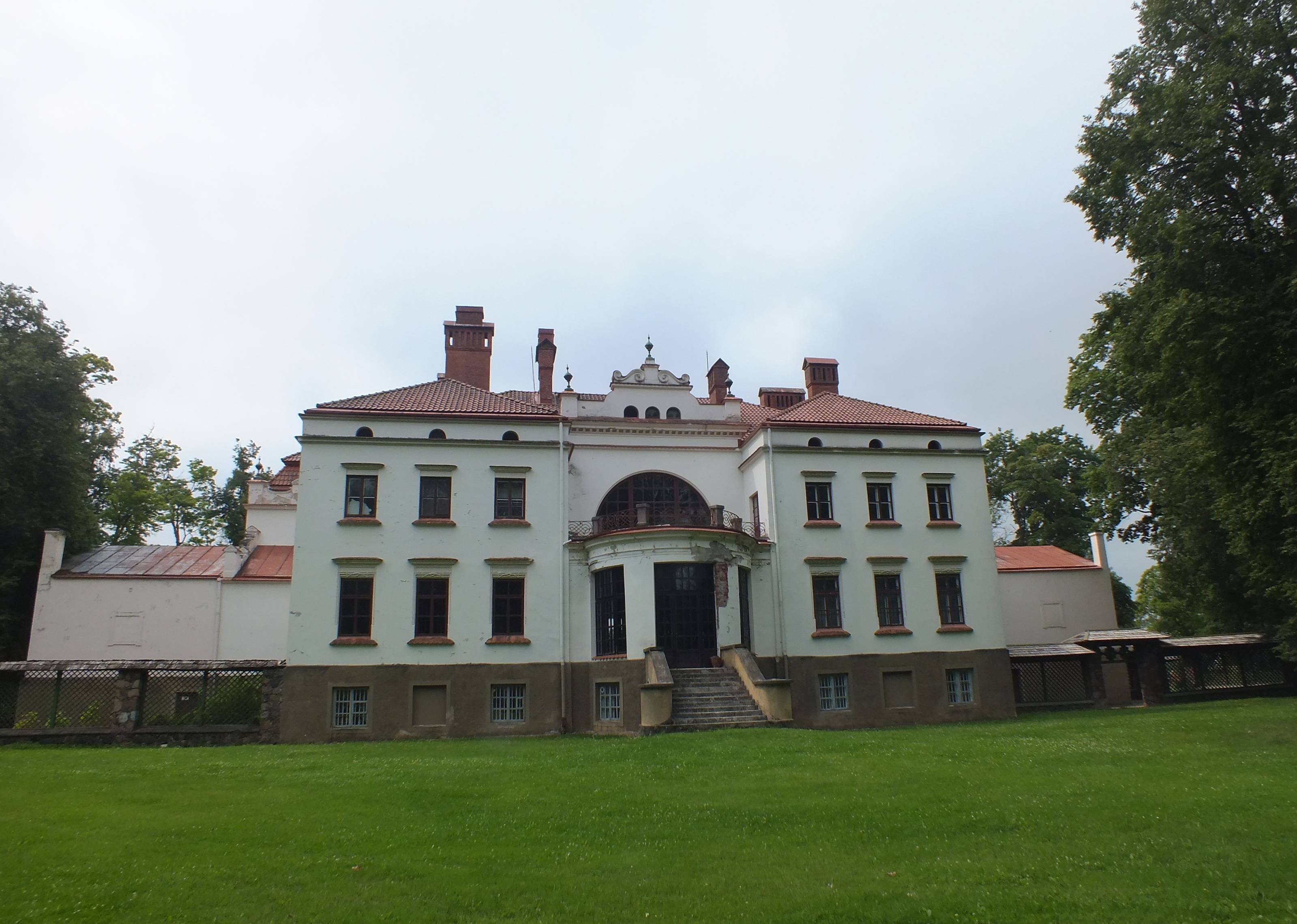 Dzisiaj Rakiszki (lit. Rokiškis) są miastem leżącym w okręgu poniewieskim i liczącym bez mała 16 tysięcy mieszkańców. Zachował się w nim pałac będący niegdyś siedzibą Tezenhauzów i Przeździeckich. Zbudował go w 1801 roku starosta podolski, Ignacy Tyzenhauz (1760-1822), żonaty z Mariannę Przeździecką (1763-1843), prawdopodobnie według projektu wileńskiego architekta, Wawrzyńca Gucewicza. Na planie szerokiego prostokąta, zbliżonego do kwadratu stanęła dwukondygnacyjna budowla. Pierwsza kondygnacja, niska niczym suterena, przeznaczona została na pokoje gościnne i pomieszczenia gospodarcze, na piętrze zaś znalazły się pokoje reprezentacyjne i mieszkalne. Przed trójosiową, podwyższoną o półpiętro, środkową częścią elewacji frontowej postawiono na trzech arkadach portyk. Jego cztery toskańskie kolumny dźwigały belkowanie i spłaszczony, trójkątny fronton, otoczony kroksztynowym gzymsem. Obie skrajne osie jedenastoosiowej elewacji głównej zajęły pseudoryzality, mające naśladować alkierze staropolskich dworów. Zostały one zamknięte ćwierćkolistymi przyczółkami, a pokryte dachem półokrągłym, podczas gdy główny korpus pałacu przykrywał wysoki dach czterospadowy, z kopułą pośrodku, z której wyrastała żeliwna iglica, służąca do zawieszania herbowej chorągwi, mającej świadczyć, że właściciele przebywają w pałacu.