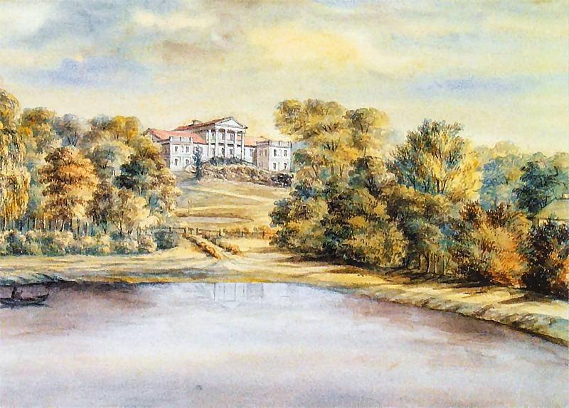 Pałac w Hanuszyszkach w roku 1875 na akwareli Napoleona Ordy |
