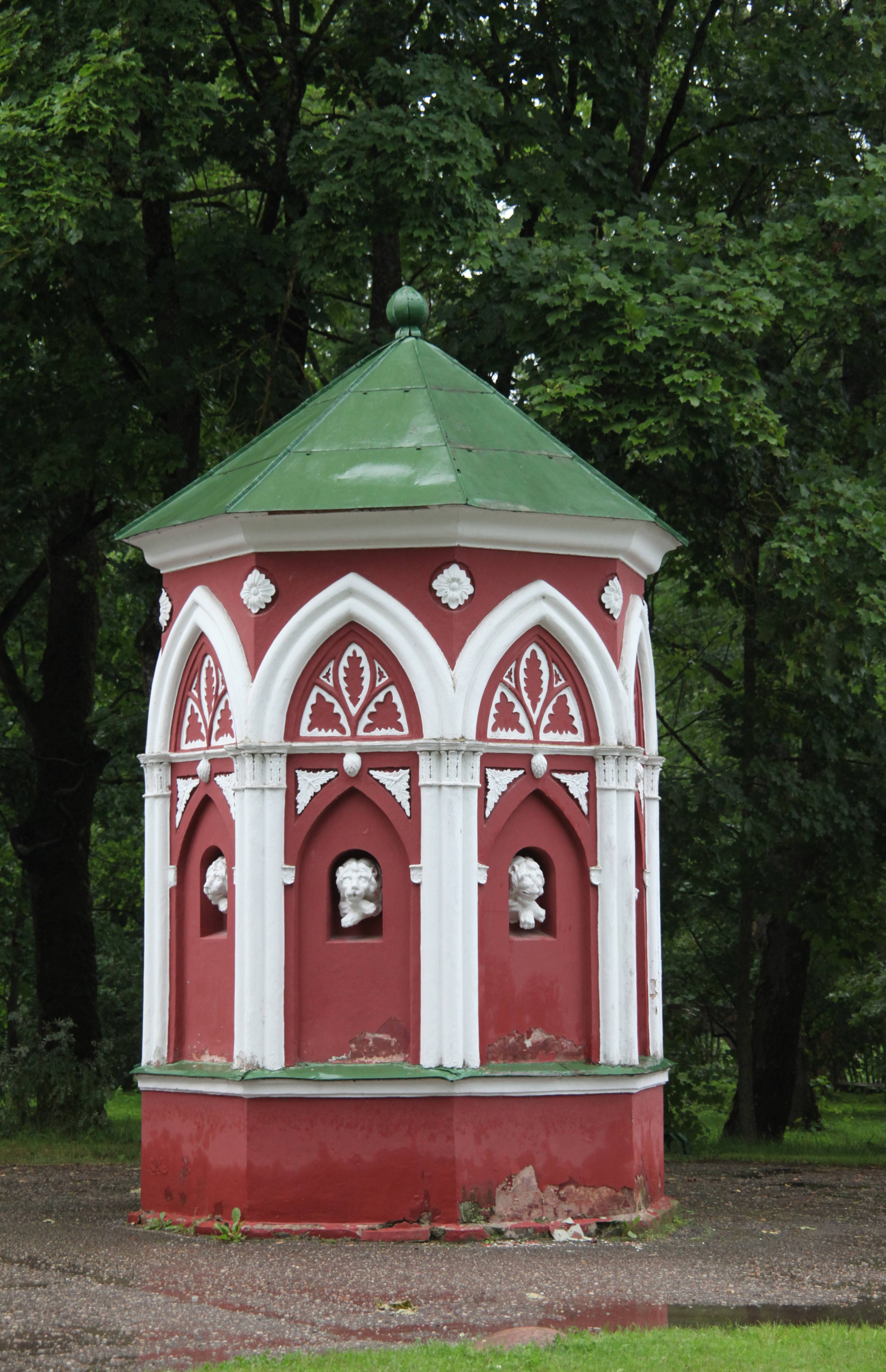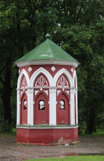 W północnej oficynie umieszczono kuchnię. Inne budynki gospodarcze znalazły się na obrzeżach parku. Jeszcze jedna oranżeria oraz pralnia i lodownia zostały zbudowane w stylu neogotyckim. W 1882 roku u wylotu alei prowadzącej do pałacu Władysław Komar wzniósł neogotycki kościół p.w. Św. Trójcy, w którym został później pochowany.
