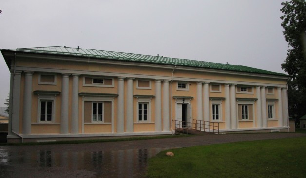 Była to budowla murowana, o znacznej grubości ścian, dwukondygnacyjna, jedenastoosiowa, z wyróżniającym się półokrągłym, pięcioosiowym ryzalitem w elewacji frontowej, podwyższonym o półpiętro i nakrytym kopulastym dachem. Okna ryzalitu, zarówno na parterze, jak i piętrze zamknięte zostały półokrągło, natomiast okna na półpiętrze były kwadratowe i znacznie mniejsze. Pozostałym oknom nadano kształt prostokątny, te na parterze otrzymały nadokienniki proste, na piętrze natomiast - trójkątne. Główne drzwi wejściowe znalazły się w ryzalicie i zostały zamknięte również półokrągło. Przestrzenie międzyokienne na parterze wypełniono boniami, na piętrze - kanelowanymi pilastrami korynckimi, stykającymi się z szerokimi obramieniami okien, na półpiętrze - zawieszonymi girlandami i rozetami. Na wysokości pierwszego piętra ryzalit otoczył balkon z miedzianą balustradą, a zwieńczenie ryzalitu stanowił wydatny gzyms wsparty na kroksztynach. Na szczycie kopuły stanęła duża rzeźba przedstawiająca Michała Archanioła.