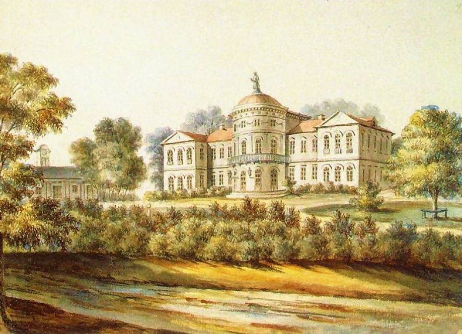 Pałac w Bejsagole na akwareli Napoleona Ordy z 1875 roku |