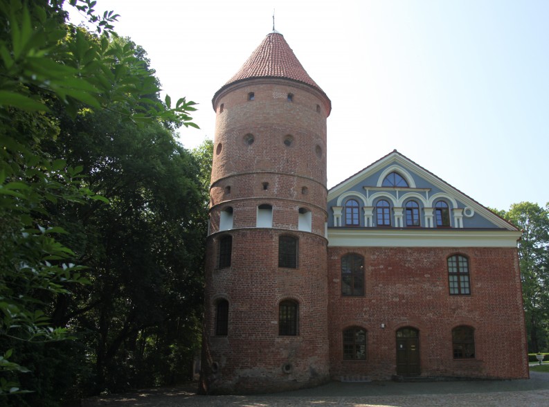 Była to budowla dwukondygnacyjna, o grubych, półtorametrowych ścianach wymurowanych z nieotynkowanej cegły, postawiona na planie wydłużonego prostokąta i przykryta dwuspadowym, dość wysokim dachem. Przy narożniku północno-wschodnim zbudowano cylindryczną basztę, pokrytą dachem stożkowym. Duże, prostokątne okna na parterze i piętrze wyeksponowano szerokimi, białymi obramieniami.