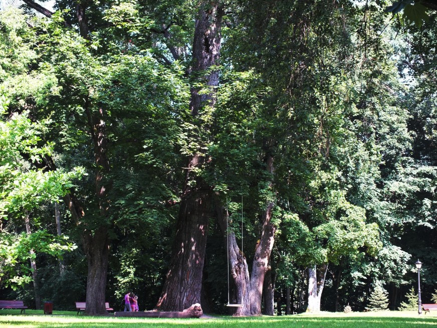 Pałac-zamek, jak go zaczęto nazywać, otoczył park urządzony w stylu ogrodu angielskiego, w którym nasadzano głównie rodzime drzewa i krzewy, ale powstała również duża oranżeria z roślinnością sprowadzoną z południowych krajów. Rosły w niej drzewa cytrusowe, palmy, figowce i egzotyczne rośliny kwiatowe. Oranżerię nazywano nie zimowym, lecz "rajskim ogrodem" i ustawiono w nim marmurowe rzeźby Adama i Ewy, aby jeszcze bardziej przypominały mityczny raj.