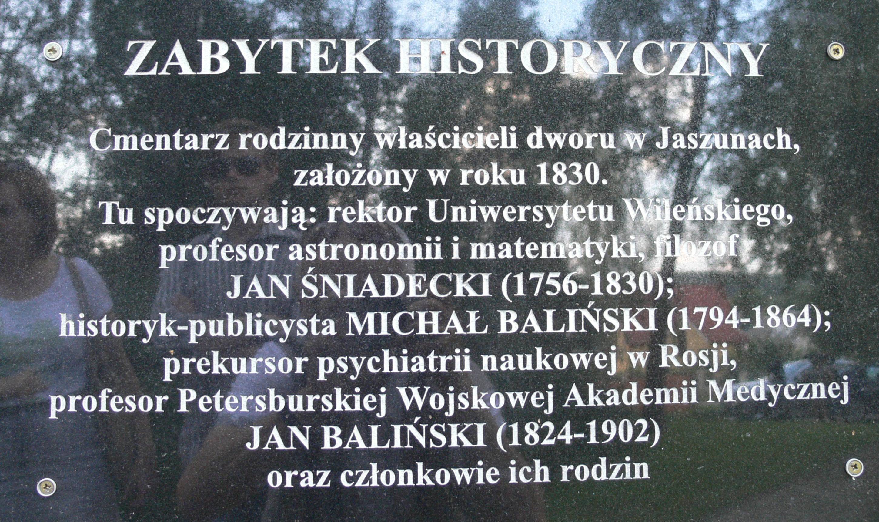 Tablica upamiętniająca Jana Śniadeckiego oraz Michała i Jana Balińskich |