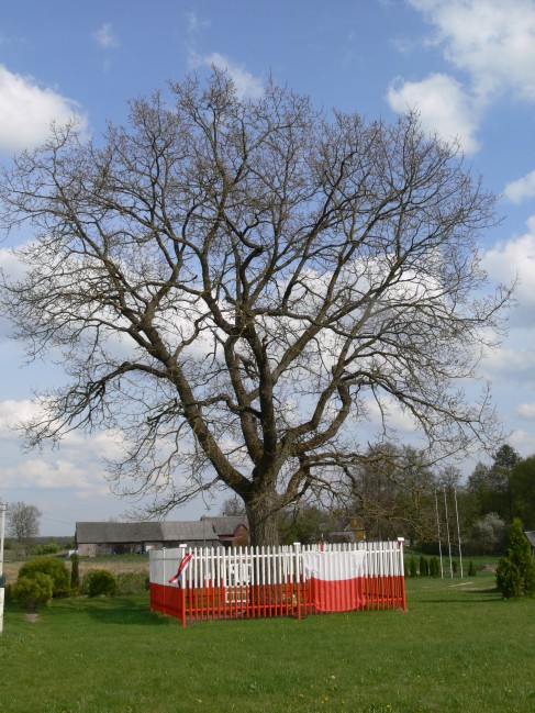 Dąb posadzony w 1937 roku w miejscu, w którym stała kolebka Józefa Piłsudskiego |