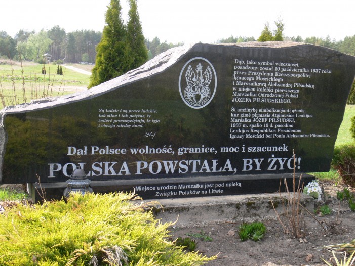 Kamienna tablica upamiętniająca miejsce urodzin pierwszego marszałka Rzeczypospolitej |