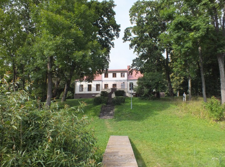 Dwór w Pikieliszkach widziany z brzegu jeziora |